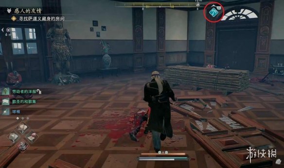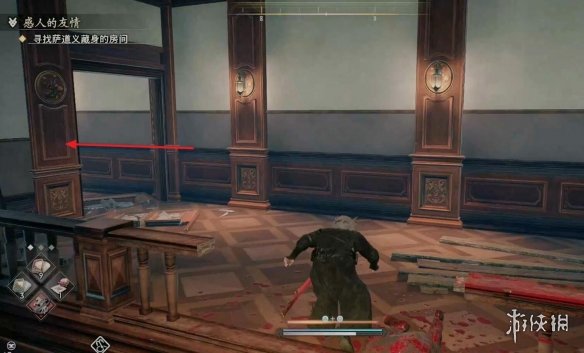 注意走廊里触发陷阱的机关,沿路走到尽头的房间处。
