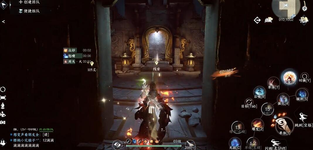 3、来到坐标(910,1002)处进入室内,阅读线索后来到外面投掷圣火枪击穿青铜巨像的甲胄。