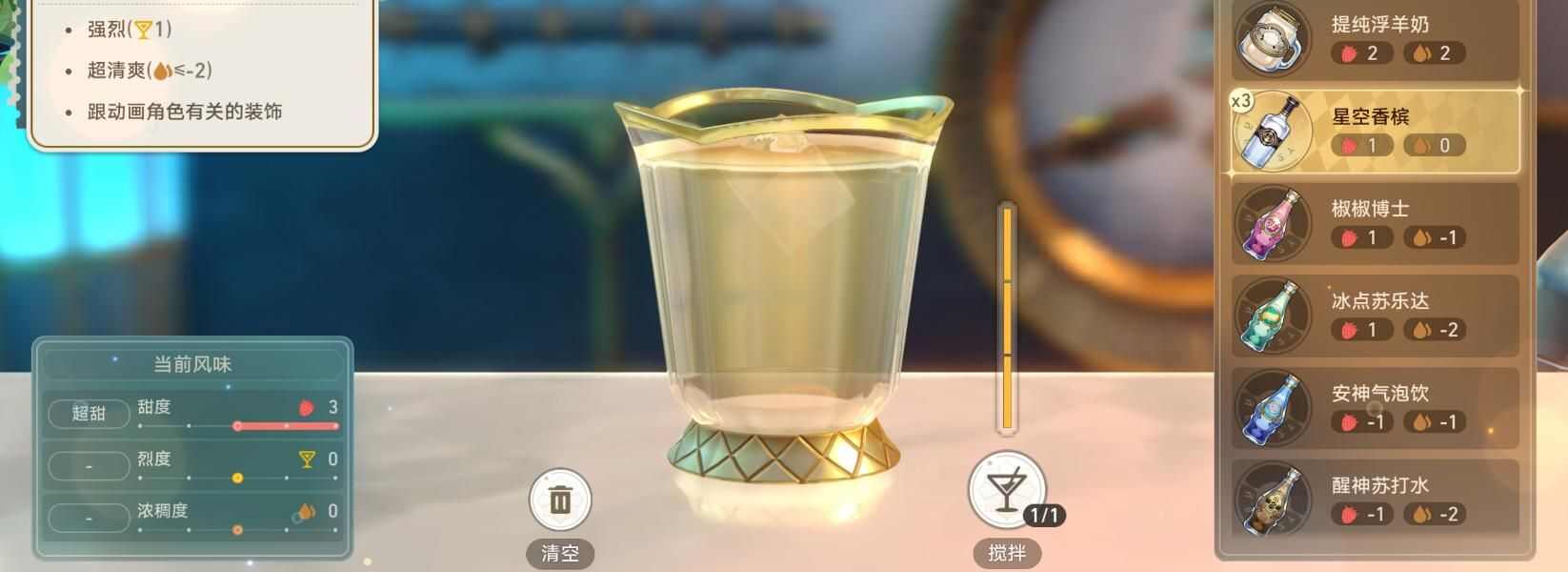 (2)然后不按要求调制饮品5次即可(可以按下面这个配置来)