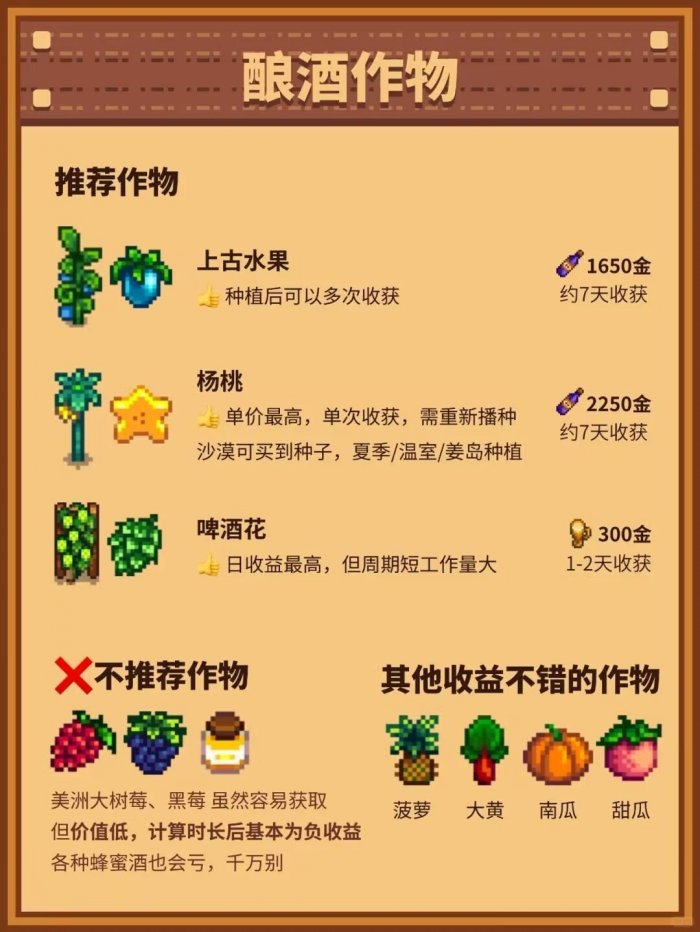 果酒收益=3x作物基础价格,所以单价高的水果酿酒收益更高