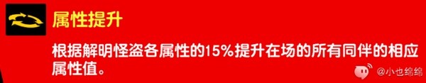 根据解明角色的各种属性的15%提升在场所有同伴对应的属性。