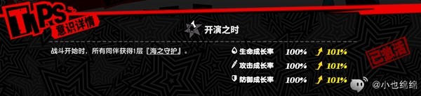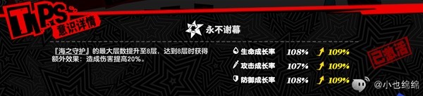 每层【海之守护】获得额外效果,使同伴的防御力提升1.2%。
