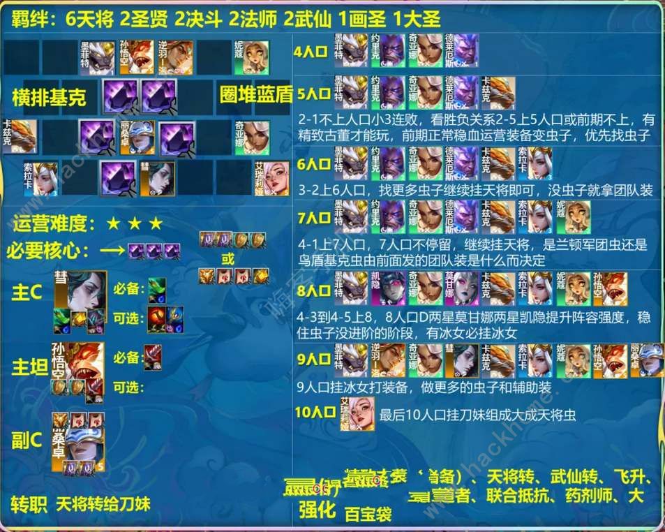 1.阵容:石头人+螳螂+妮可+琪安娜+索拉卡+丽桑卓+罗+彗星+猴子;