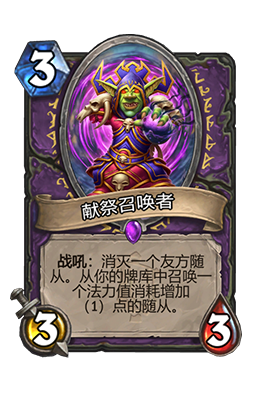 献祭召唤者(Sacrificial Summoner)是奥特兰克的决裂加入的一张术士随从牌。