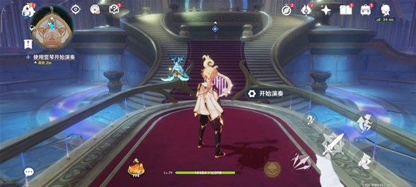 来到竖琴位置,点击“开始演奏”进行演奏。