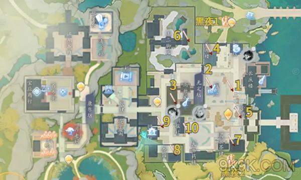 7.不管我们选择是哪条主线,我们在推进的过程中都会要求进行战令+剑飞+百炼的挑战,我们当然也为少侠做了准备,下面是剑飞1-10位置地图。