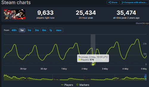 《女神异闻录5皇家版》自1月起每日在线人数稳定在万位之上,近期促销更是引得玩家人数峰值达到惊人的25,434人。然而,这一壮观景象在5月2日戛然而止,大量玩家被迫禁止进入游戏。原因在于D加密的服务器因某种原因关闭,导致DRM(数字版权管理)无法按预期工作,从而在启动时无法进行身份验证,游戏世界随之陷入停滞。