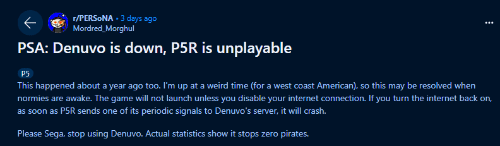 D加密再引众怒!服务器中断曾导致《P5R》无法游玩