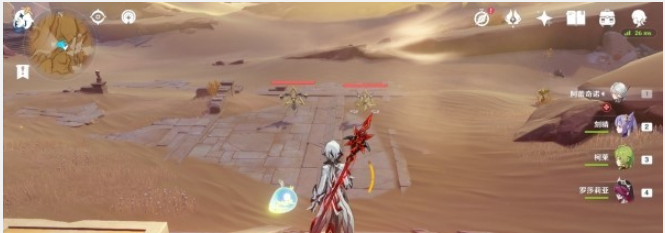 在须弥沙漠的神秘圣显厅,发现有两种独特的入口。首先,通过圣显厅大门的传送锚点,反向走到地图西边。在那里,你可以轻松地下楼梯。一到达门前,只需击败那两只守护者,你便能进入圣显厅深处。