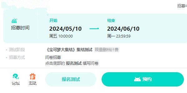 宝可梦大集结的火热测试即将开放,这对于每一位渴望亲身体验的玩家来说都是一次难得的机会。然而,由于测试名额有限,因此,玩家需要尽快行动。首先,玩家需密切关注官方发布的测试资格申请渠道。5月10日,已经公开了报名链接,玩家需要前往填写问卷。其次,在填写问卷的过程中,确保所有必要的信息都已经完整无误地填写。这样,才能增加获得测试资格的机会。最后,需要注意的是,尽管目前测试资格仍在申请中,但测试时间确实定在6月份。因此,如果想要进行测试,那么请耐心等待到6月份。总的来说,宝可梦大集结的测试资格申请是一项需要玩家抓紧时间、细心操作的任务。希望每一位热爱这款游戏的玩家都能顺利获得测试资格,早日体验到宝可梦大集结的魅力。