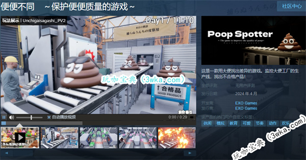 便便不同,由EXO Games的青少年亲自操刀发行。这是一款模拟器游戏,带玩家体验大便工厂日常确保出品的大便质量,别让生产任务因质量问题而停滞哦!