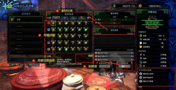 2、用餐技能(只看左侧图标所在行)