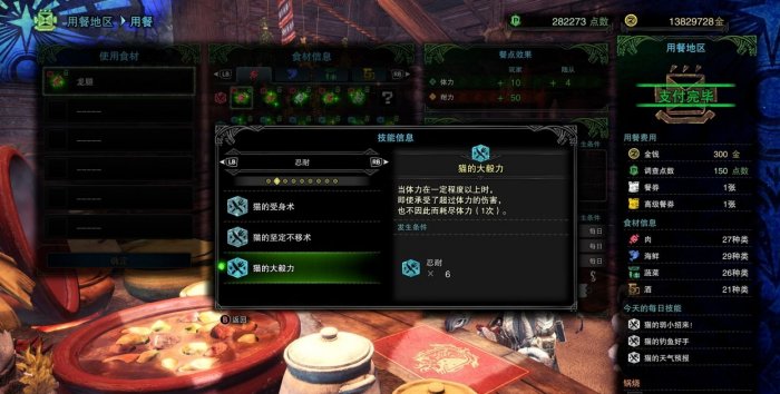《怪物猎人世界》冰原猫饭效果一览 冰原猫饭技能详情