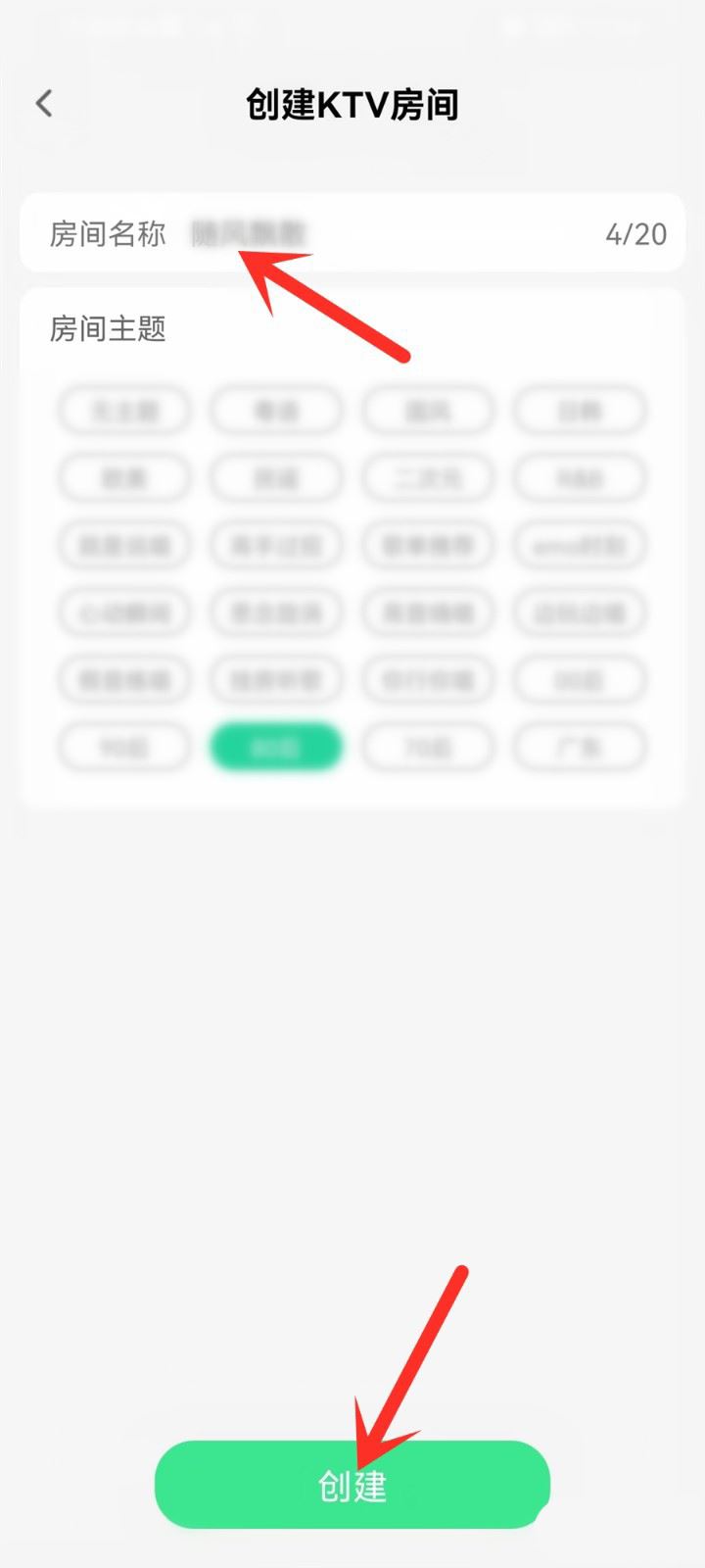 第三阶段、简便操作,通过填写房间名及选择主题,一键生成专属KTV空间。