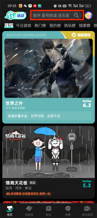 在Tap Tap探索新鲜,点击首页上端搜图标开启智能之旅。