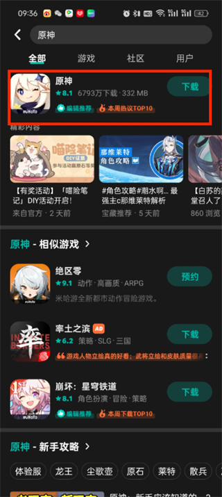 原神搜索结果中的精选游戏,轻松点击探索丰富冒险世界。