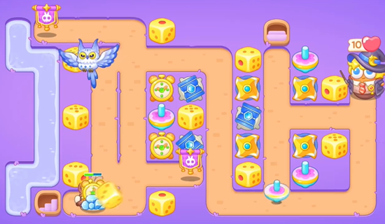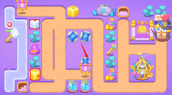 在阿波与魔法宝藏第71关中,玩家将面临两条漫长且路径交错复杂的路线挑战。关键在于观察线上呆兔的行踪,因为这可能成为导航的关键线索。面对这样的难关,游戏提供的炮台装备堪称多元:骰子象征随机应变,闹钟提醒不要错过时机,忍者镖则暗示灵活行动,陀螺和冰锥则为策略性的攻击提供了选择。