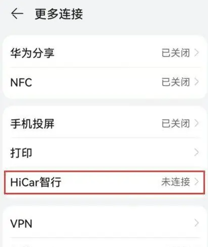 进入更多连接,点击HiCar智行。
