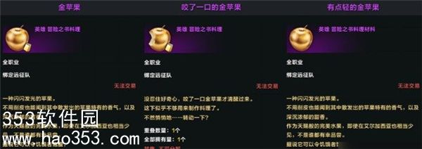 探险家在构建大陆百科时,无意间发现了这款烹饪奇品金苹果馅饼。通常情况下,只需两个熠熠生辉的金苹果就能制作出美味的馅饼。然而,生活总有一些意外的小插曲。想象一下,当冒险家辛苦获取金苹果后,忍不住轻轻咬了一口。这个看似微不足道的动作,就会让原本的金苹果变成了一个咬了一口的金苹果。然后,冒险家可以巧妙地将这个小瑕疵掩饰过去,转而拥有一个虽然有些轻,但却依旧熠熠生辉的有点轻的金苹果了。