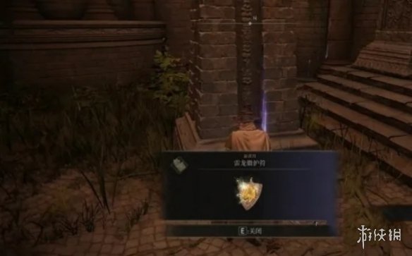 接下来,我们巧妙地穿越左侧设有守护雕像的房间,直抵神秘的神授塔。沿神授桥边行进,轻易就能拾获威严的雷龙徽护符。