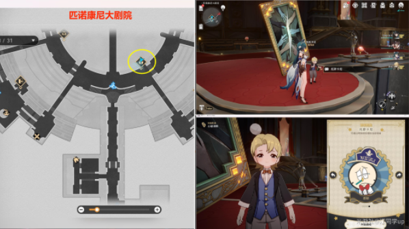 玩家需精确定位至匹诺康尼大剧院地标点,参照示意图前往。