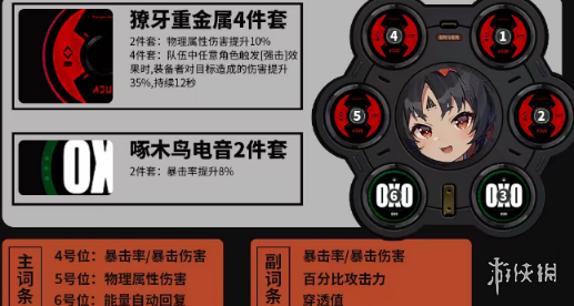 暴击双刃剑:暴击率提升打击力度,暴击伤害百分比增加穿透敌人。副条诠释了暴力美学在战力上的体现。