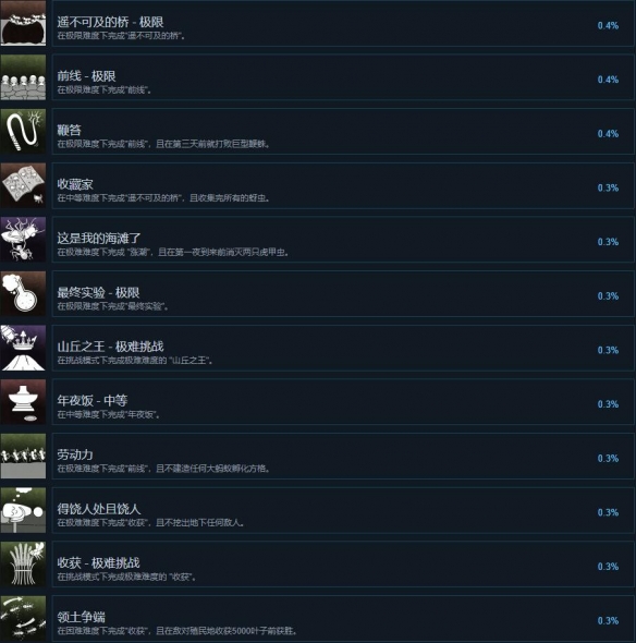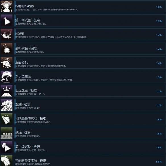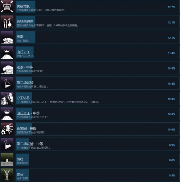 《地下蚁国》成就大全 地下蚁国正式版的深度更新强化了游戏的成就系统,为玩家提供了海量多样的成就目标。总计,游戏中设有成就等待玩家解锁,解锁这些成就将见证你对地下蚁国探索的深度和广度。快来文中一探究竟吧! 地下蚁国成就怎么做 (点击图片可查看大图)