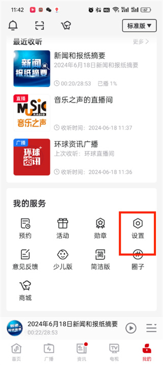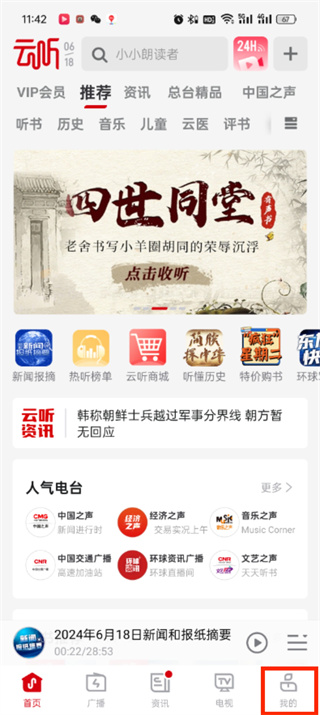 为了获取更多优质信息,我建议您先点击云听软件的主页,然后找到并点击我的选项。