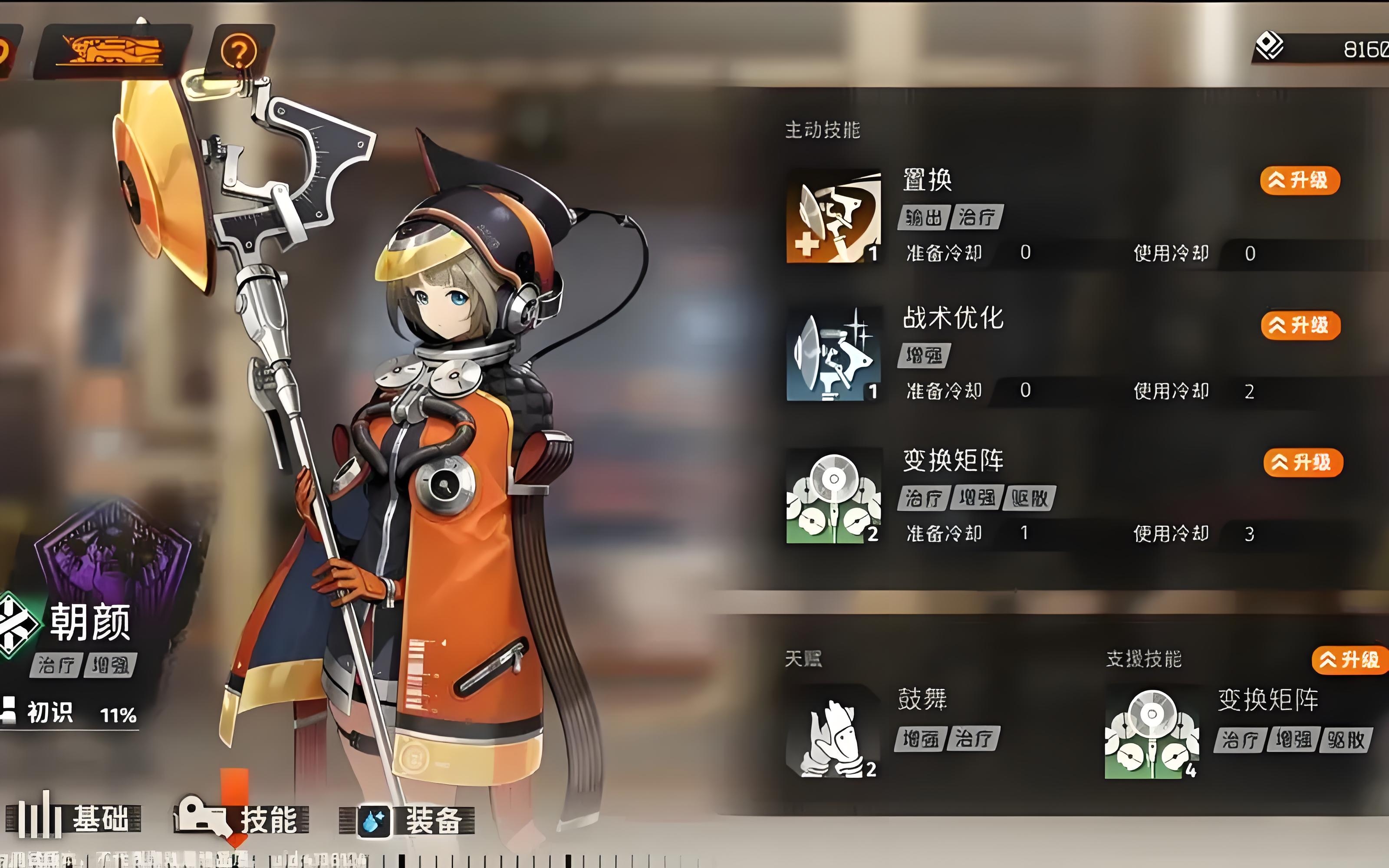 作为辅助角色,朝颜的主要技能是专注于治疗,包括置换、战术优化和变换矩阵。