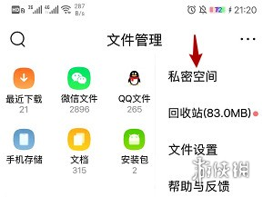 4、点击”私密空间“。