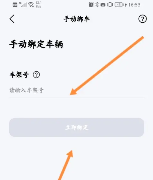 输入车架号,点击立即绑定。
