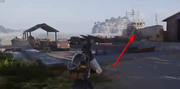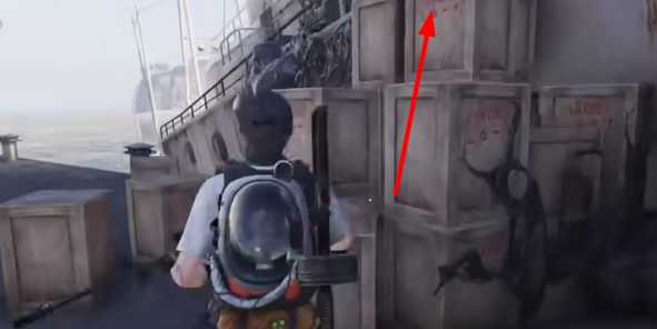 3、等上船之后需要从下图中的箱子爬上去,直接攀爬就可以了;