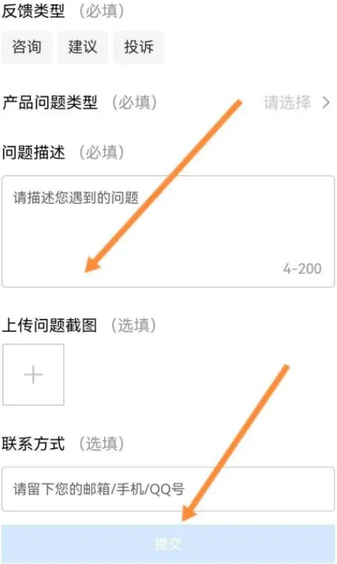 第四步、最后输入反馈的内容,点击下面的提交即可。