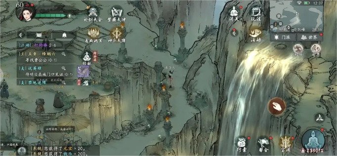 随着冒险者步入崖底密洞,深入探索时,他们会在论剑峰的底部( -发现一个土堆,并进入挖掘以寻找隐藏在其中的小型土堆,进一步发掘后会获得残缺的字条提示,引导玩家前往瀑布区域。