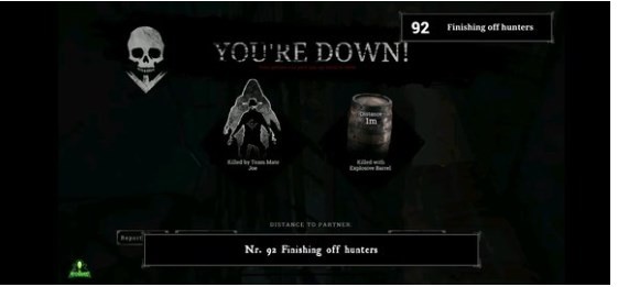 在击败猎人之后,将其拖入火中并持续燃烧,直至其生命值消耗殆尽,从而失去站立的能力。