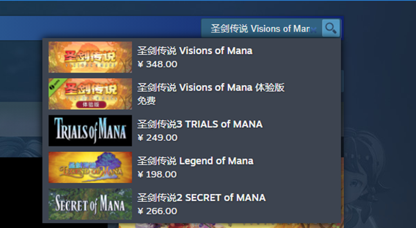 3、同时玩家也可以在商店的搜索栏中搜索圣剑传说Visions of Mana。