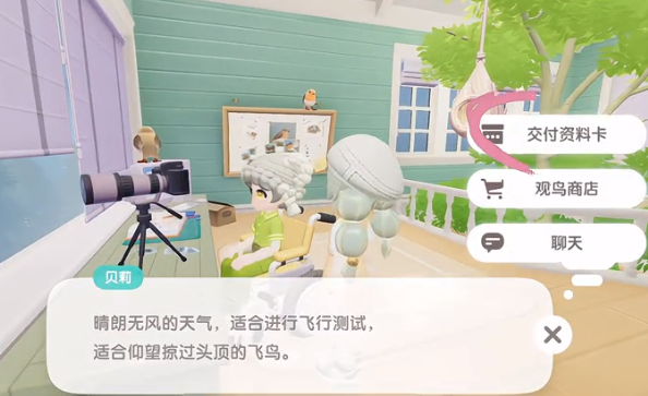 请注意:在进行摄影时,由于可能惊扰到这些鸟类,他们可能会分散视线而使观鸟游戏中的玩家失败。为此,在拍照过程中务必小心谨慎。鸟类在观察过程中展现出的独特动作或觅食行为,则可以解锁更为高级的观鸟卡。若想交换物品或实物材料,建议再次寻找观鸟爱好贝莉寻求帮助。