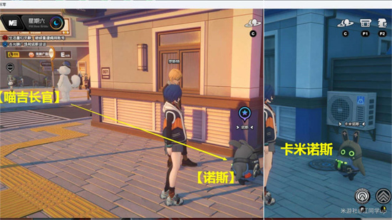 完成探索委托“一桩疑案”并找到两段录像,之后三人中有一人不在场。请在光映广场与喵吉长官会面,结束当前任务,并调整游戏时间至第二天后重新开始。
