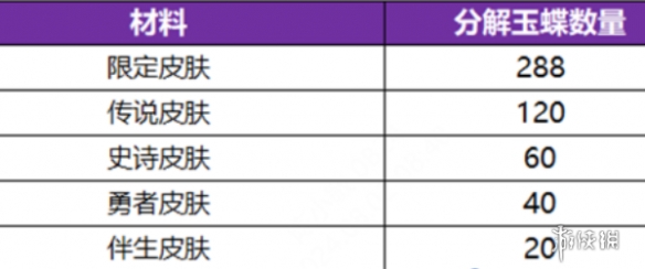 3、玩家可将多余的皮肤、皮肤碎片、亲密度道具分解为玉蝶资源。