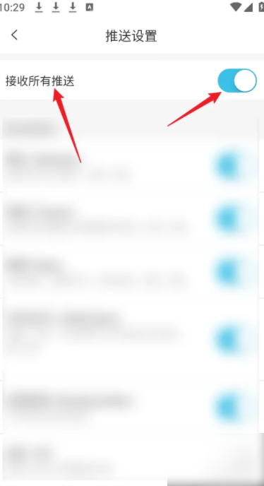 在当前界面,把“接收所有推送”功能按钮打开即可