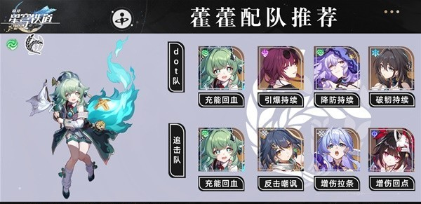 这个队伍结合了藿藿的充能回血、黑天鹅的降防、阮梅的破韧增伤,能够应对大部分关卡的挑战。