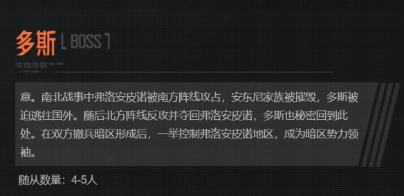 1、多斯将会在海滨别墅这个区域出现,并且会携带4到5名随从。