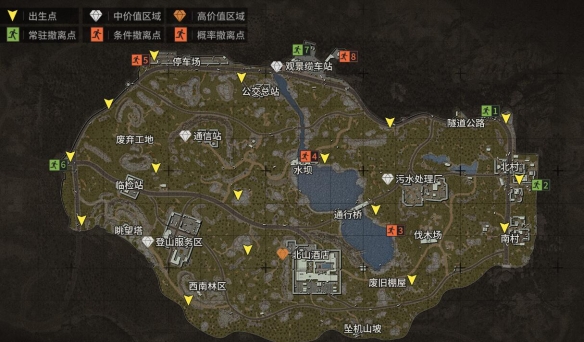 弗雷德和他的队伍占领了这一片地区,拥有多样化的物资储备以及精锐的游荡者守卫,该区域开阔,适合伏击,并拥有快速撤离的手段,如水坝和求生艇等。然而,撤离时也存在极大的风险。
