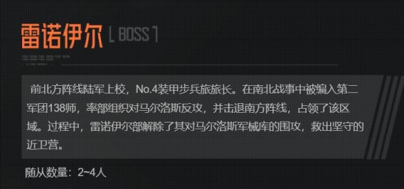 1、雷诺伊尔只会在前线要塞内部出现,并且会携带2到4名随从。