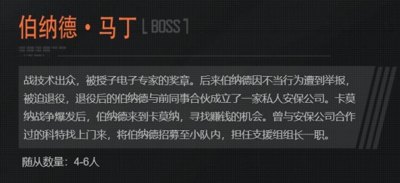 游戏攻略:游戏中的BOSS不仅拥有强大的攻击能力,还能熟练操作多种类型的轻武器,并且擅长利用烟雾弹来进行隐蔽的攻击。