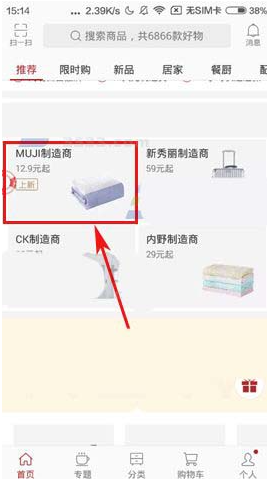 1、打开软件,点击首页的一个品牌,进去之后点击【上新提醒】;