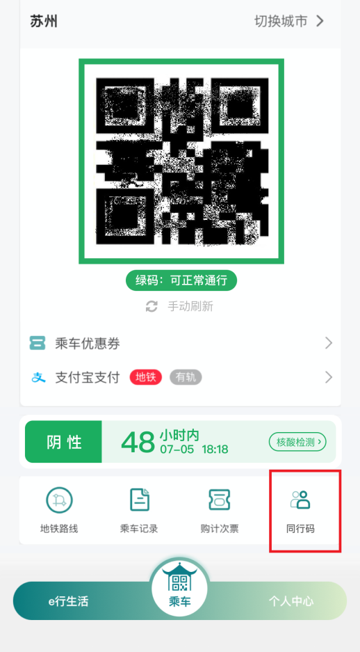 苏州地铁同行码开通方式: