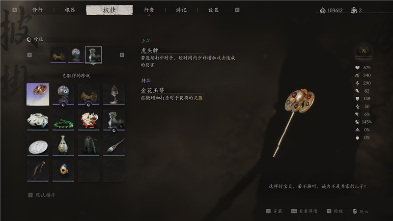 金花玉萼,黑神话悟空游戏中的稀有珍玩,作用为略微提升玩家击杀怪物时所获灵蕴值。