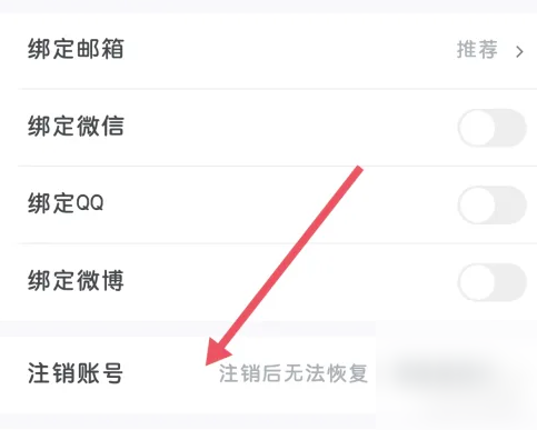 在〖账号管理〗底部有〖注销账号〗一栏,点击就可以了哈