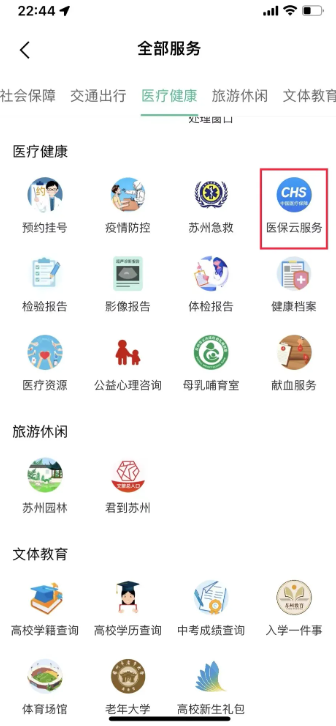 02选择“医疗健康”版块,点击“医保云服务”